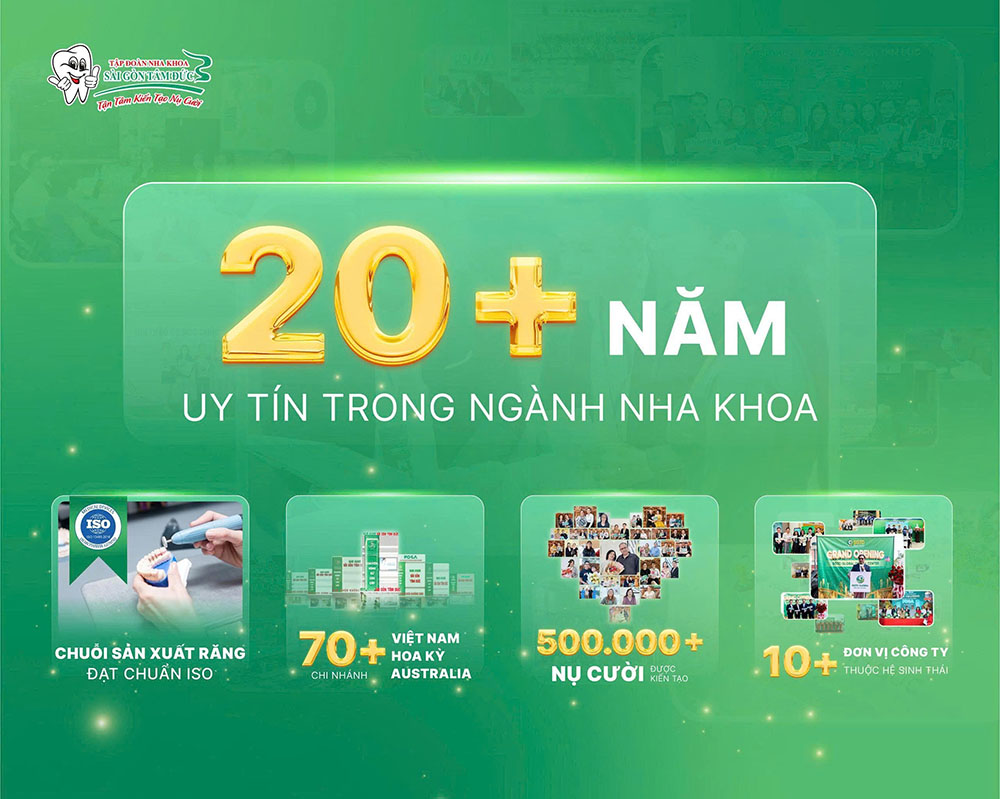 Với hơn 20 năm kinh nghiệm, Nha khoa Sài Gòn Tâm Đức khẳng định uy tín bằng chuyên môn vững chắc, công nghệ hiện đại và hàng trăm nghìn nụ cười khỏe đẹp đã được kiến tạo.